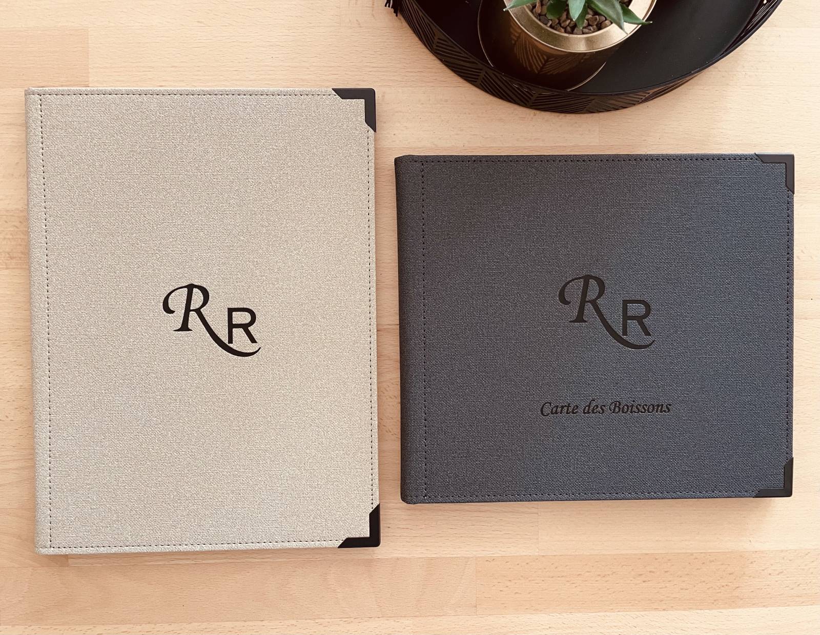 Adaptés aux restaurants, hôtels, brasseries haut de gamme ou bars à vin, ces menus constituent un support durable et valorisant, conçu pour accompagner l’établissement sur le long terme.