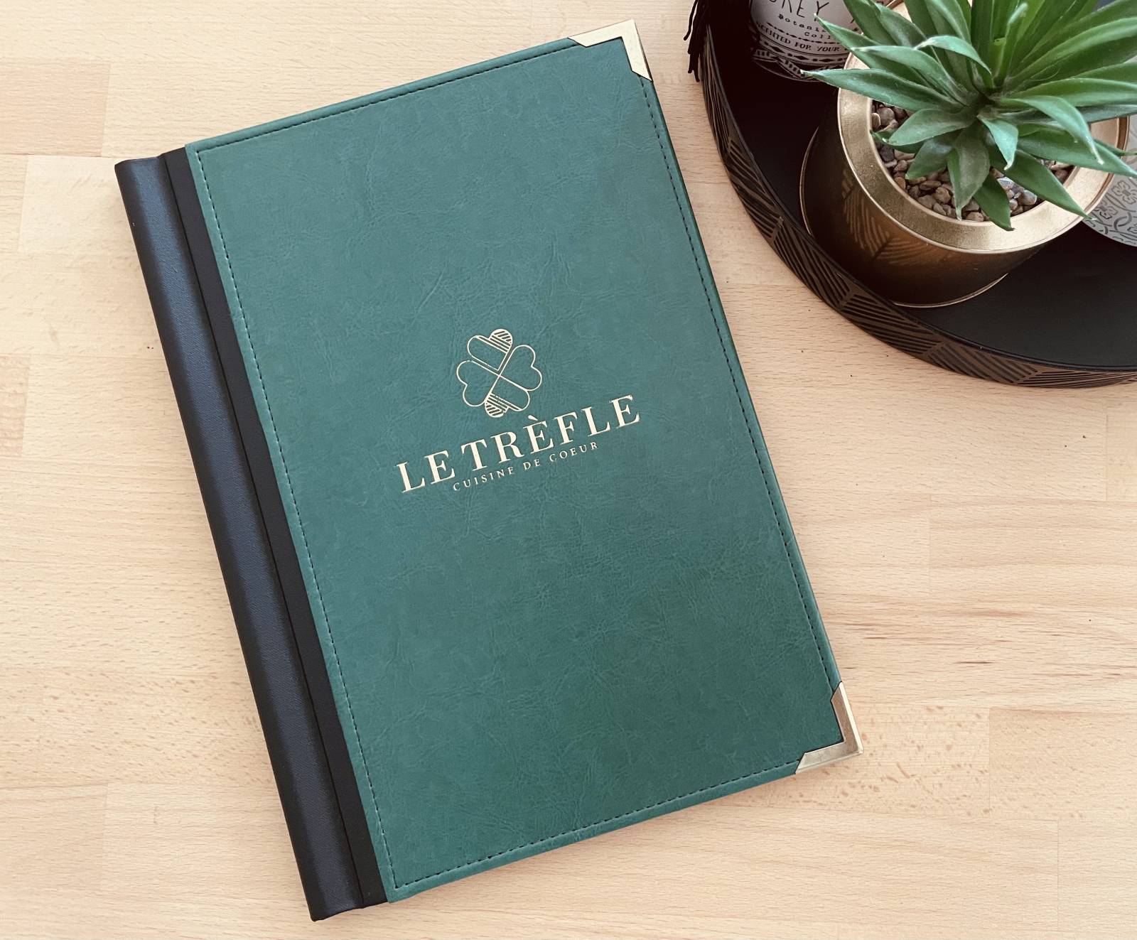 Les portes menus en simili cuir 13COM avec pince verticale sont très pratiques !