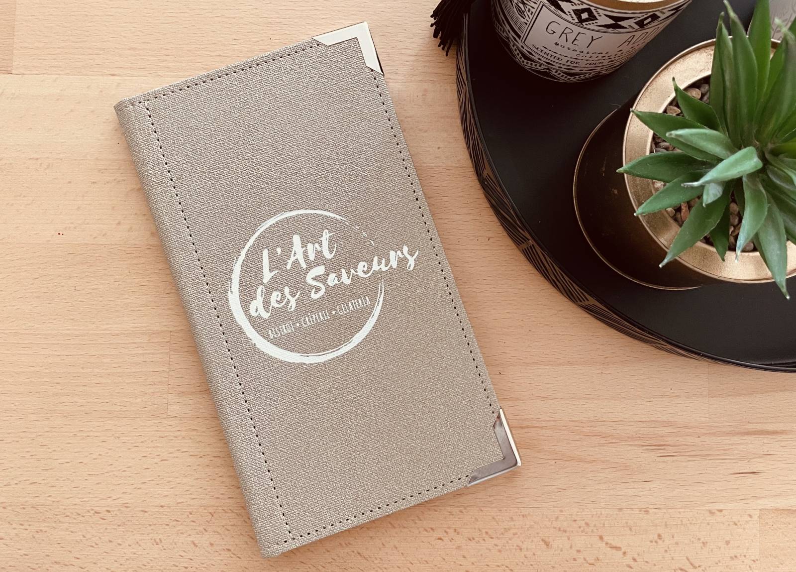 Entièrement personnalisables par notre équipe chez 13COM (formats, coloris, marquage du logo ou du nom de l’établissement), ces porte-additions en toile s’adaptent à l’identité visuelle du restaurant, du bistrot à l’hôtel.