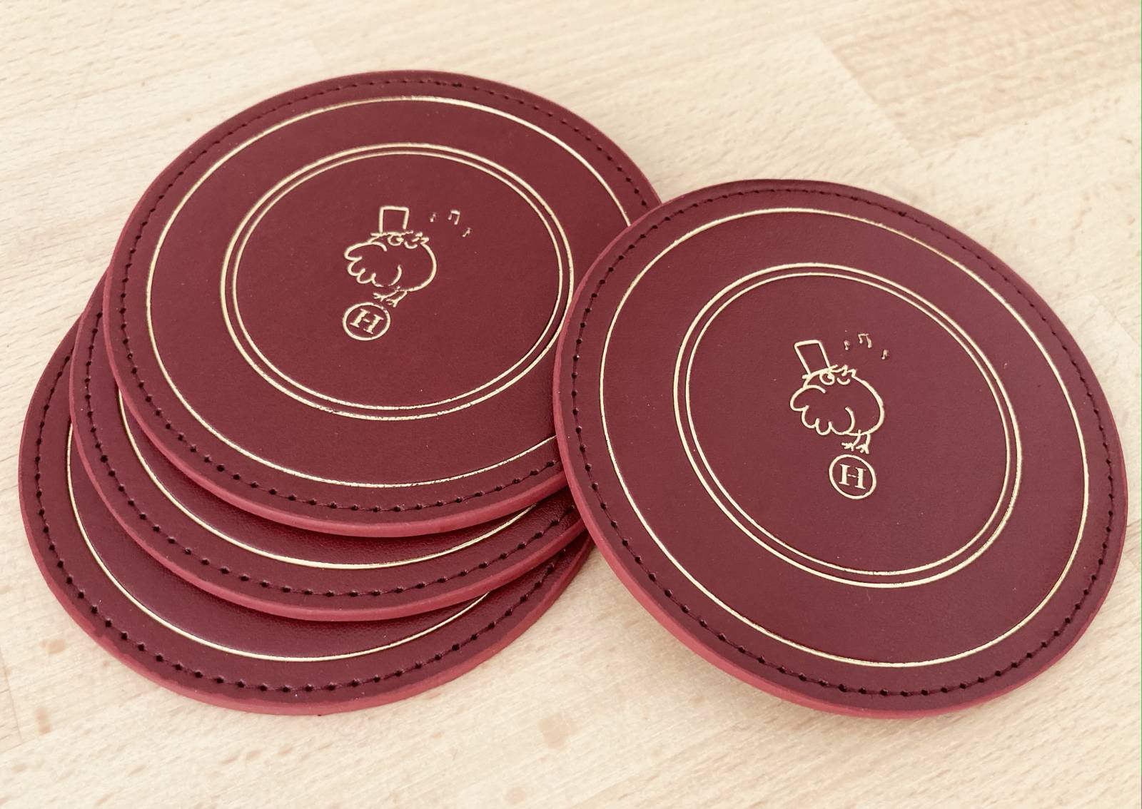 La surpiqûre périphérique, réalisée avec soin, vient souligner la forme circulaire du sous-bock et renforcer son caractère artisanal. Ce détail couture confère au produit une dimension luxe, tout en assurant une excellente tenue dans le temps.